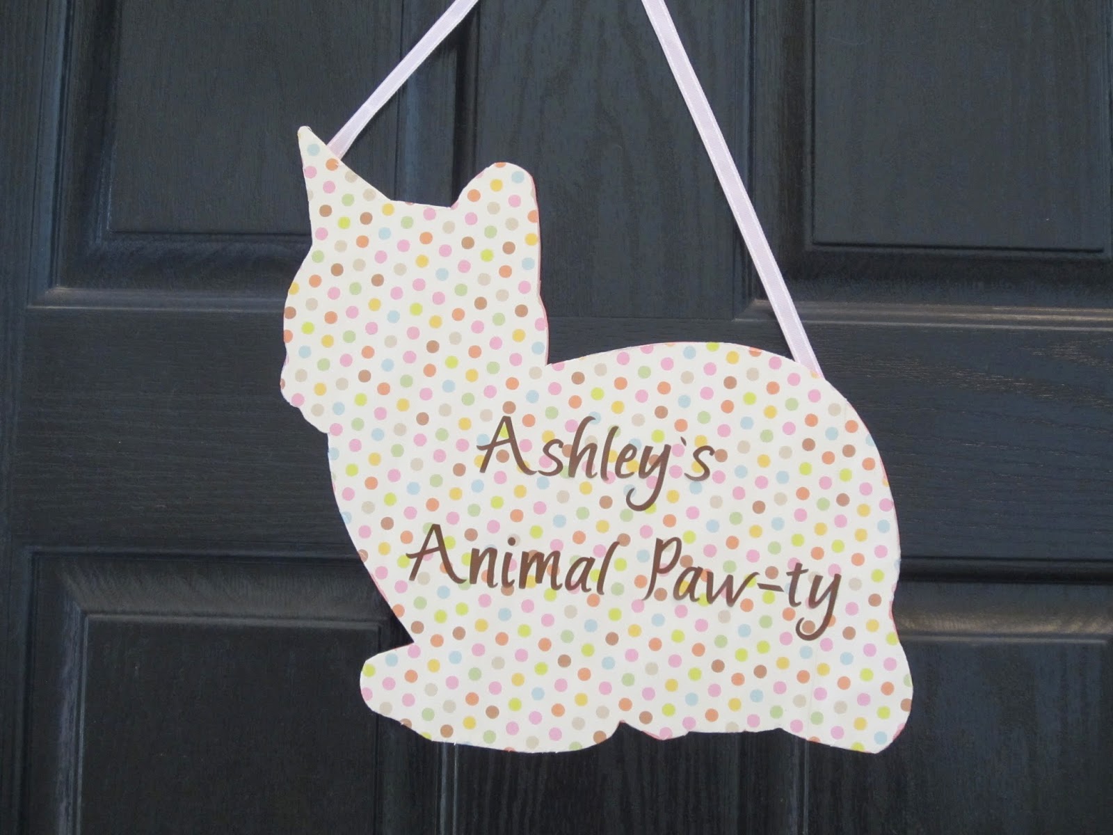 6. Cut a ribbon the length needed to hang your sign on your door or wall. To attach the ribbon, either punch small holes in two spots on the top of your silhouette or simply tape the ribbon to the back.
